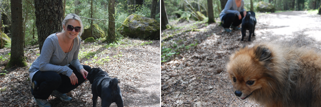 Idag har Jennie och jag varit på Björnön och gått i två timmar med våra vovvar. Jätteskönt var det. Lite svårt med barnvagnen ibland när det var stigar mitt i skogen med rötter, fallna träd och kottar.